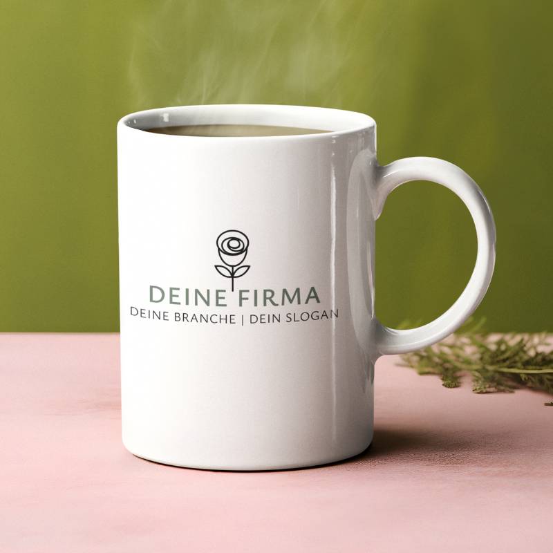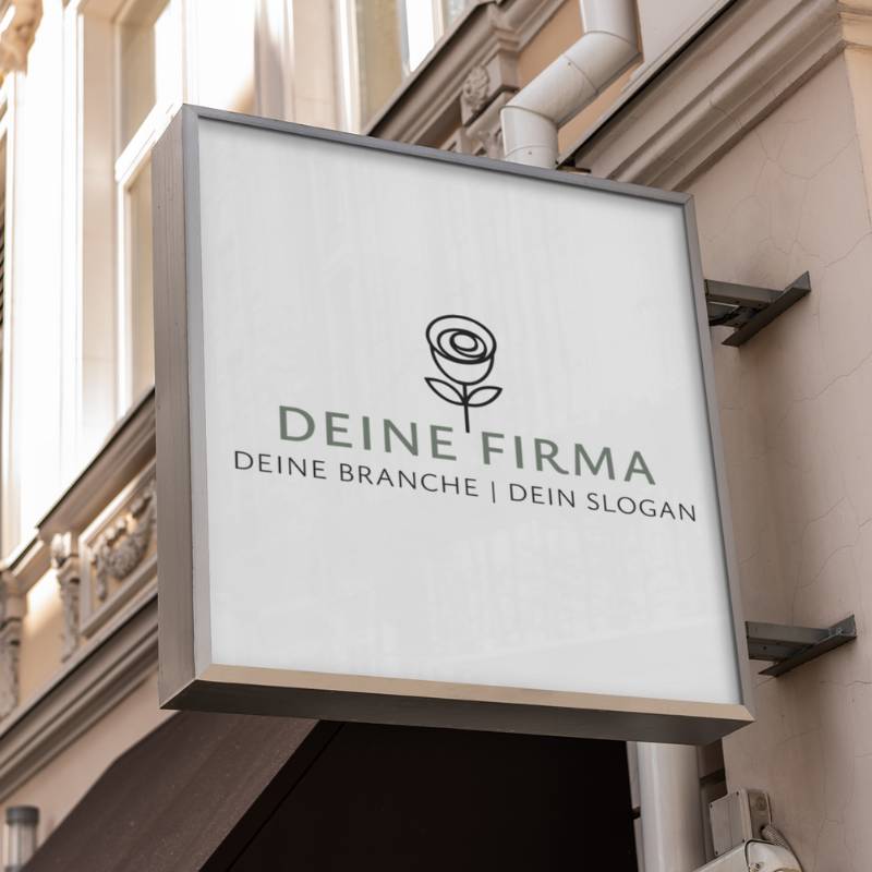 Das Logo wird nach dem Kauf personalisiert: Dein Firmenname, optionaler Slogan oder Branchentitel.